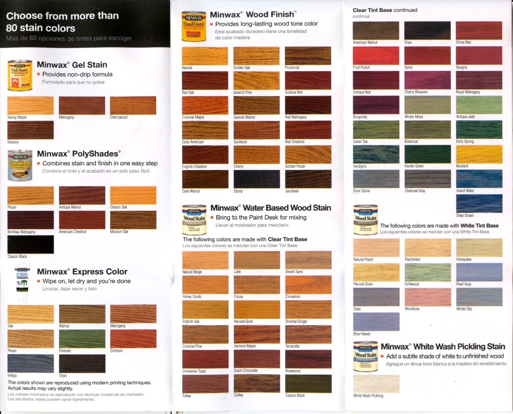 This is the list of stains we use for our stain and seals. Please go ahead and take a look at them and again, if you see something you love just let us know the stain name in your contact sheet.